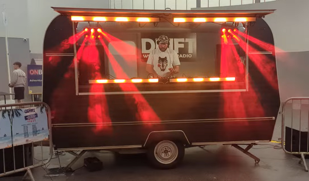 We have a wide range of custom DJ booths, including a fully converted 1982 vintage caravan, professionally transformed into a mobile DJ booth and event centrepiece. Designed to bring a unique visual and audio experience to any venue, beach location, or outdoor event. Please contact to discuss requirements.
